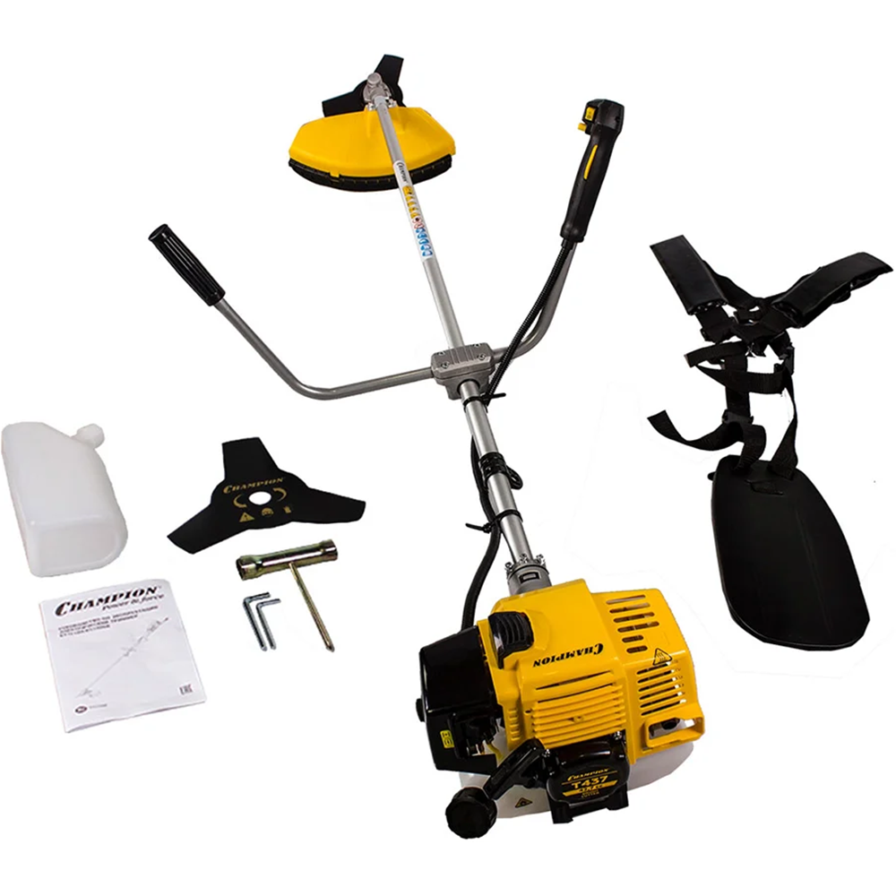 Бензиновый триммер "CHAMPION" Т437 (1шт), Защитный кожух, Подвесной ремень, Емкость для смешивания топлива, Защитные очки |