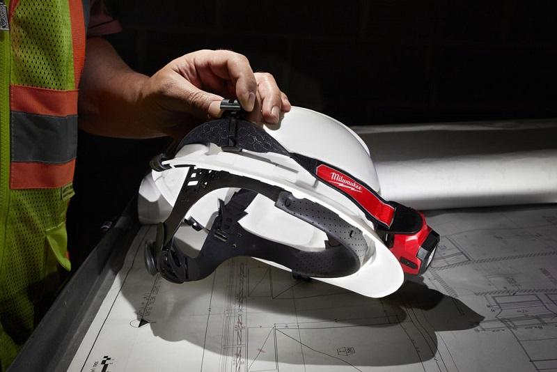 - 4 монтажных клипсы для крепления на строительную каску и регулируемый ремешок с резиновой накладкой
