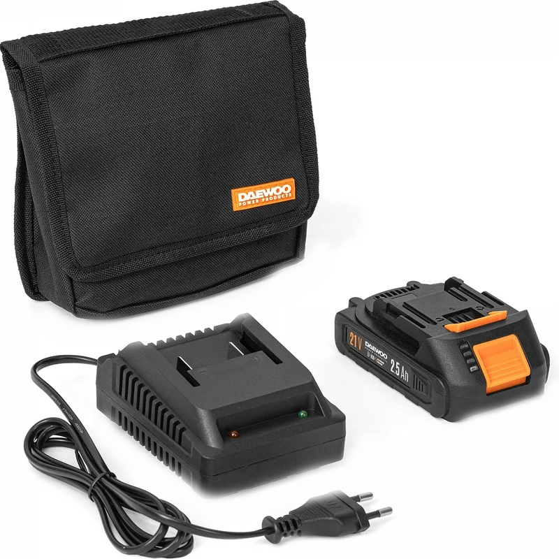 К преимуществам аккумуляторной техники можно отнести отсутствие необходимости использовать бензин и масло, тянуть за собой провод, не дышать вредными выбросами СО2 и не засорять окружающую среду. Двигатель имеет защиту от перегрузки, тем самым его срок службы будет значительно дольше. Работа устройства осуществляется от аккумуляторной батареи Daewoo 21В , которую можно использовать с другими устройствами линейки 21В.
