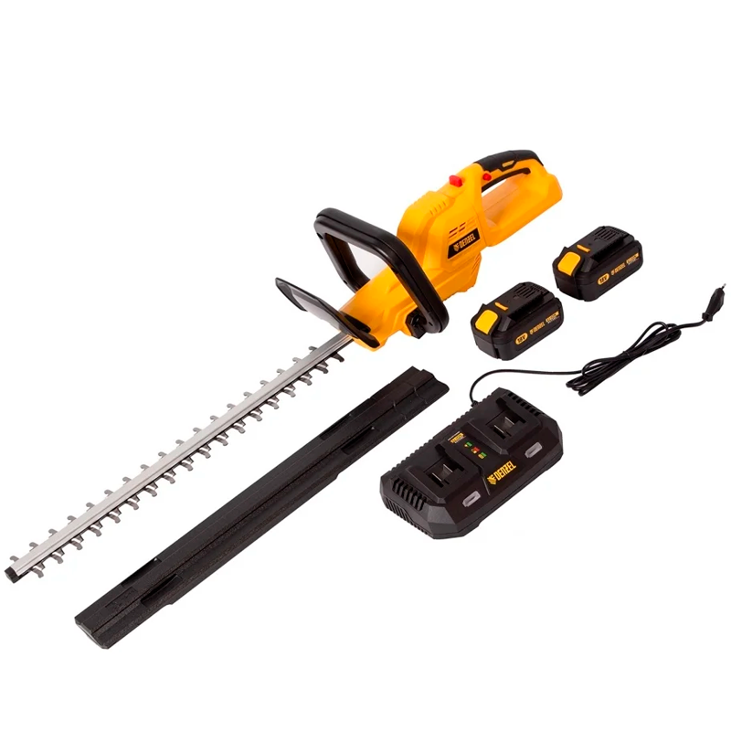 Аккумуляторный кусторез, Аккумуляторная батарея Li-ion 18 В, 4 А*ч - 2 шт., Зарядное устройство на две аккумуляторные батареи - 1 шт., Защитный кожух для режущего модуля - 1 шт., Инструкция по эксплуатации, Упаковка |