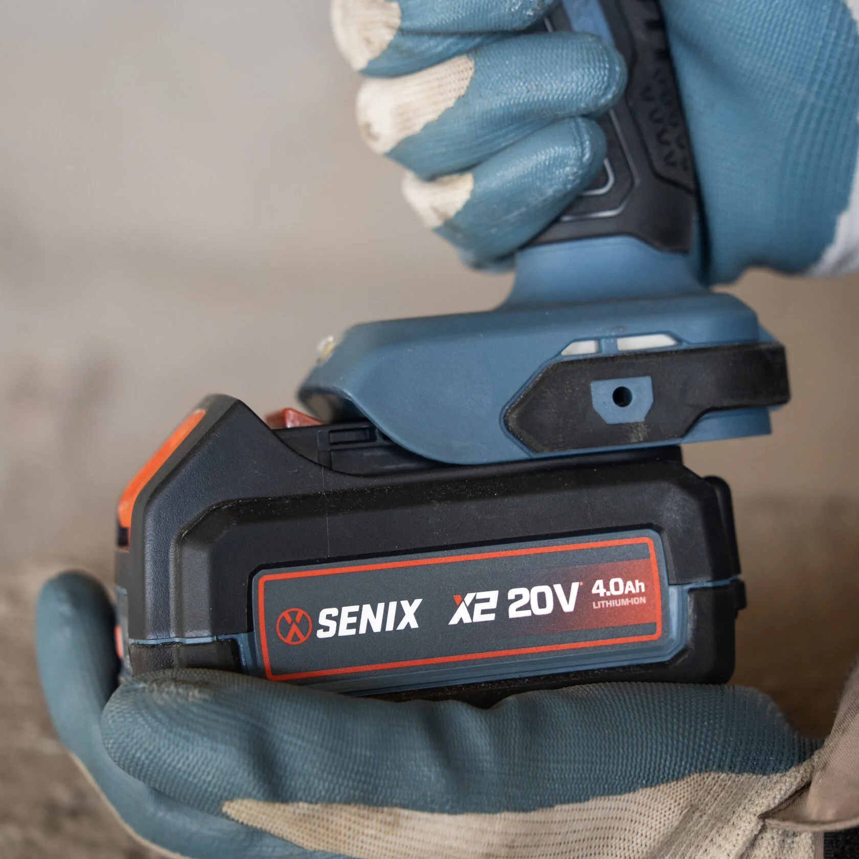 - В комплект входит зарядное устройство 2А и аккумулятор емкостью 2.5 Ач, что позволяет легко войти в линейку Senix X2, приобретая дополнительный инструмент "тушками".
