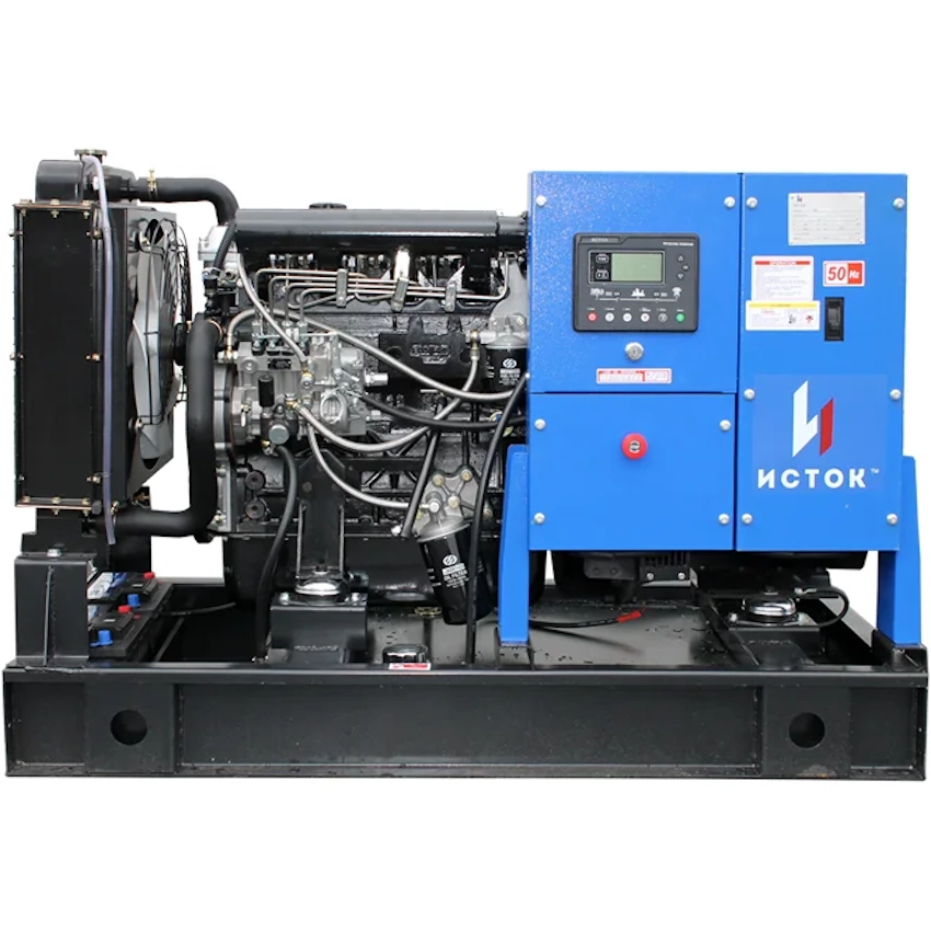 Дизельный генератор ИСТОК 55кВт АД50С-Т400-РМ15-1 – трехфазный дизельный генератор номинальной мощностью 50 кВт, созданный для применения в качестве резервного или основного источника электроэнергии промышленных и торговых предприятий, строительных площадок, коттеджных поселков, объектов социального назначения – школ, больниц и других объектов с нечастыми перебоями в основной сети.