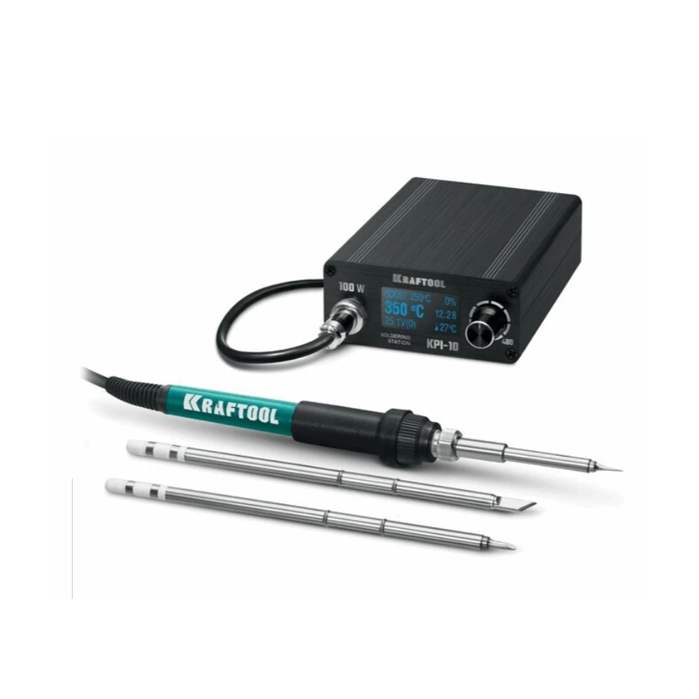 Характеристики Паяльная станция Kraftool KPI-10 50-480C, 100Вт, 3 жала, Т12 55343