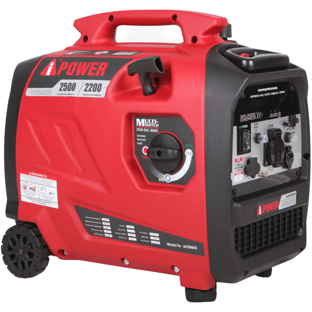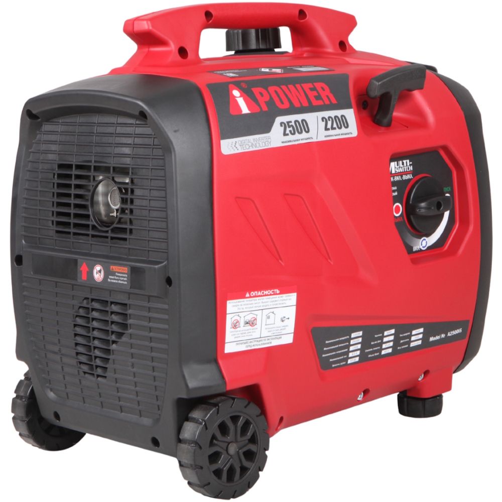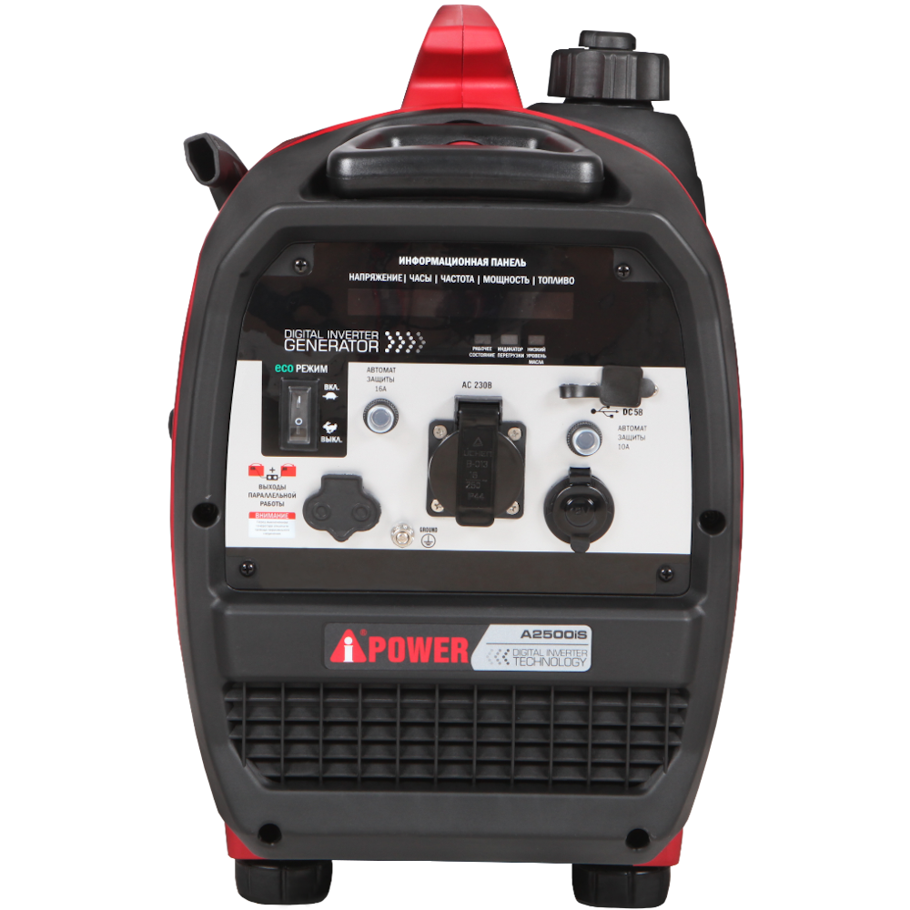 - Малый вес и компактность. Его легко перевозить в багажнике машины и переносить с места на место. Для удобства перемещения генератор A-iPower A2500iS оснащен ручкой.
