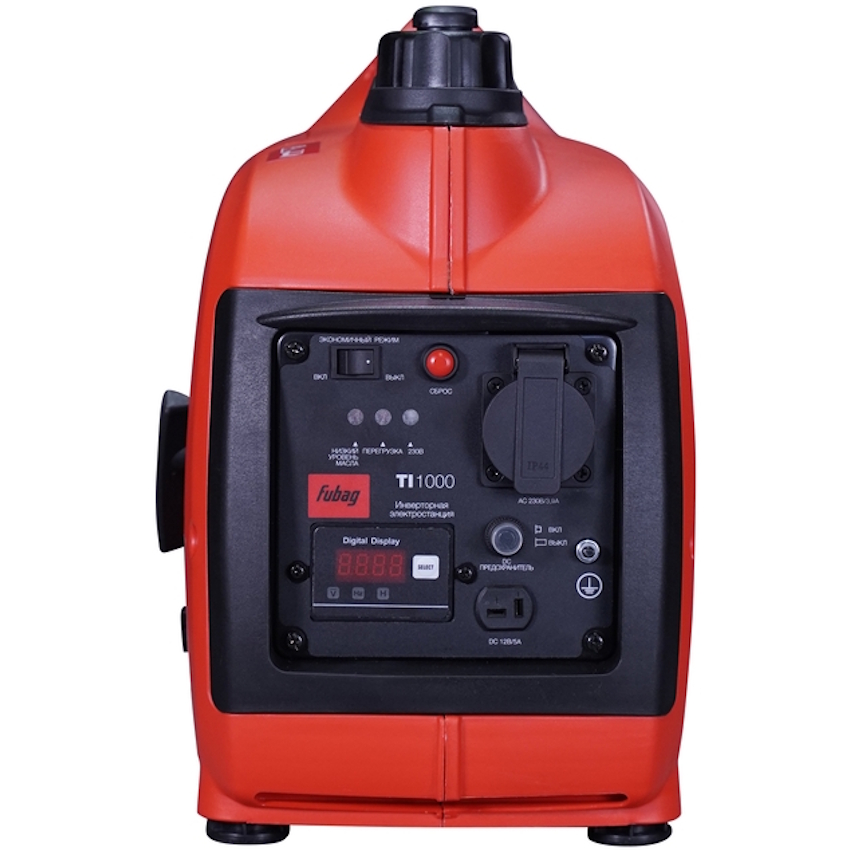Профессиональный OHV-двигатель FUBAG с верхним расположением клапанов и синхронный альтернатор с медными обмотками ротора и статора обеспечат высокий ресурс работы электростанции. От перегрева станцию Fubag TI 1000 защищает высокоэффективная система воздушного охлаждения. При низкой загрузке, двигатель можно перевести в экономичный режим, что позволит сэкономить до 40% топлива. Панель управления генератора оснащена 1 розеткой на 220В/16А, а также выходом на 12В. Цифровой дисплей позволяет контролировать выходное напряжение, частоту переменного тока, количество отработанных моточасов и частоту вращения двигателя.