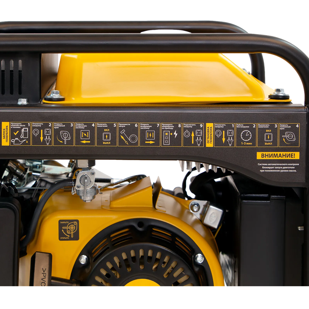 - Визуальный контроль — индикаторы на передней панели информируют о работе генератора, недостаточном уровне топлива и о перегрузке.