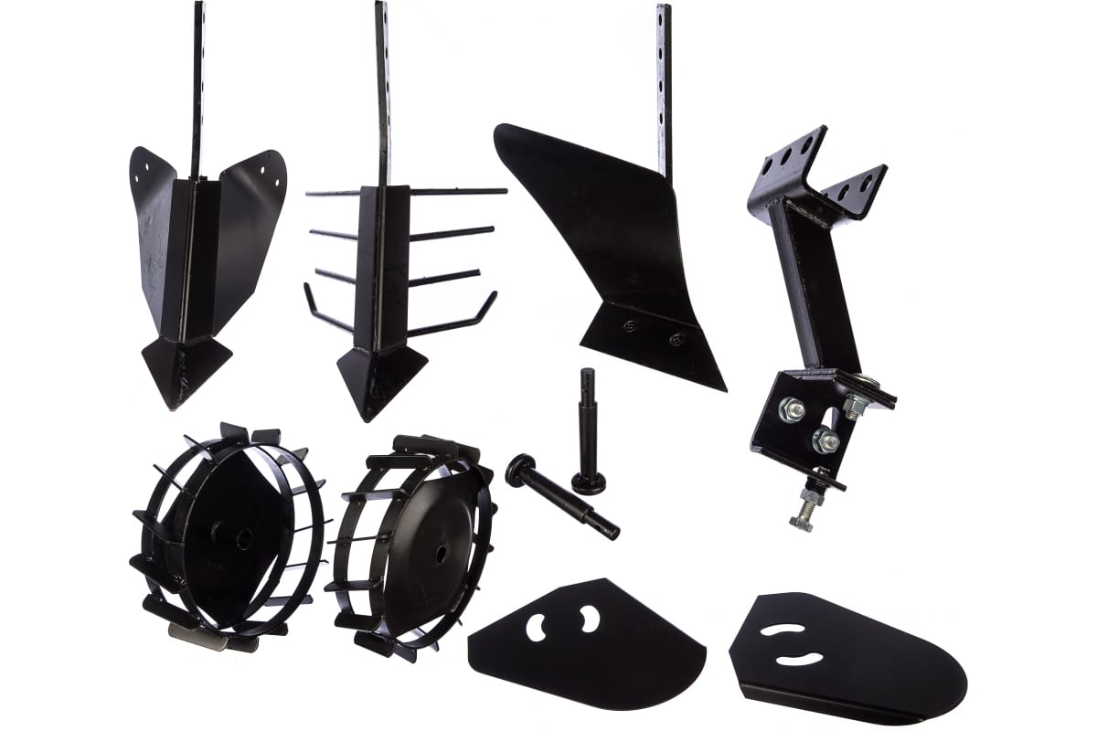 окучник - 1 шт., плуг - 1 шт., картофелевыкапыватель - 1 шт., сцепка - 1 шт., удлинители - 2 шт., грунтозацепы - 2 шт. |