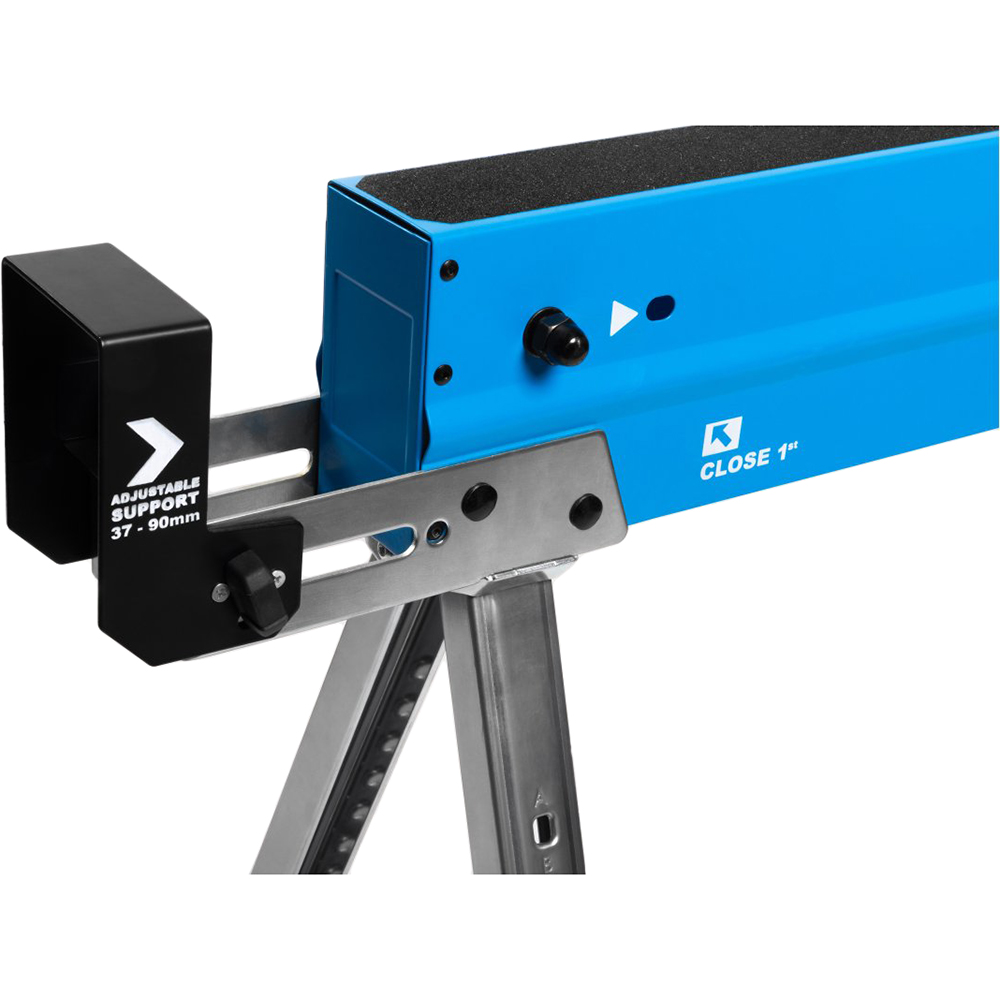 Кронштейны можно плавно регулировать в диапазоне от 40 до 90 мм, чтобы приспособить их к различным размерам столешницы. Для полной стабилизации рабочего стола, например, столешница из OSB может быть соединена с подкосами с помощью винтов. Все это позволяет организовать дополнительное рабочее пространство в любом месте.