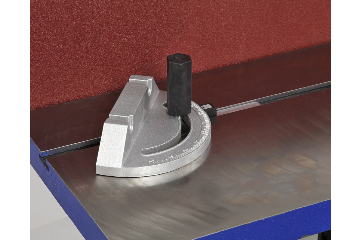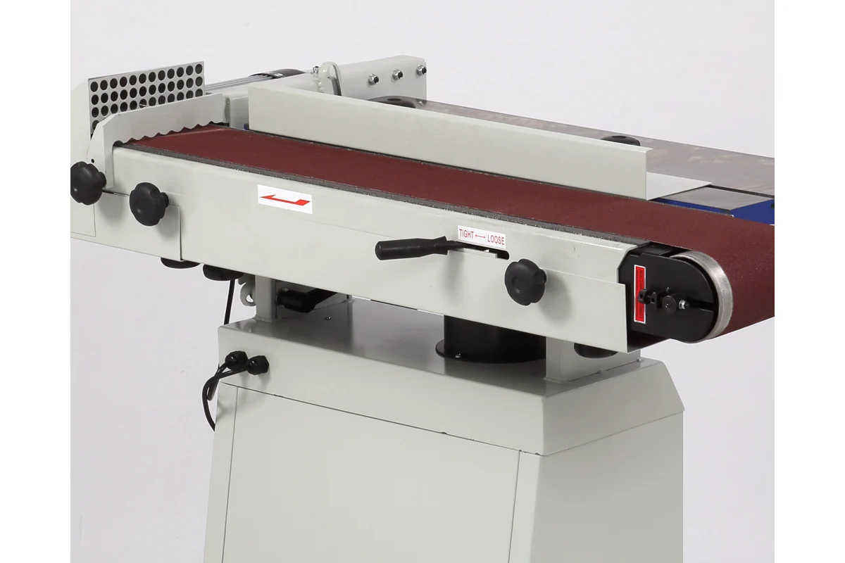 Возможность регулировки столов по высоте обеспечивает удобство работы с заготовками различных параметров. Основной стол оборудован пазом для параллельного или углового упоров. Малый стол предназначен для выполнения шлифовки деталей с внутренним радиусом изгиба до 55 мм.