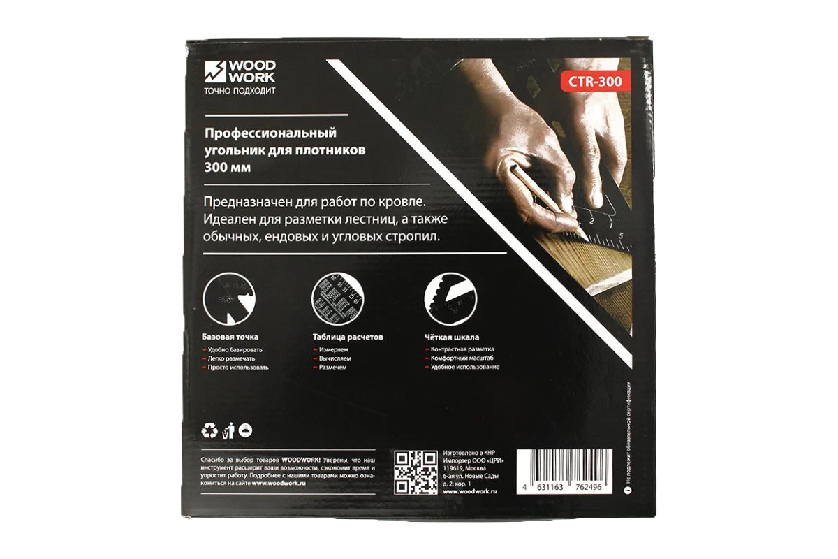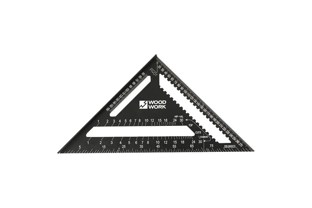 - профессиональные алюминиевые метрические угольники WOODWORK с контрастной разметкой и удобным масштабом для плотницких и столярных работ