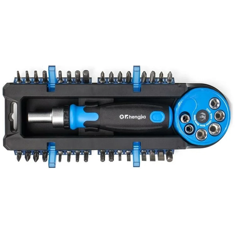 Биты шлиц: 3.0, 4.0, 5.0, 6.0, 7.0 мм, Биты PH: PH0, PH1, PH1, PH2, PH2, PH3, Биты PZ: PZ0, PZ1, PZ1, PZ2, PZ2, PZ3, Биты TORX: T10, T15, T20, T25, T27, T30, Биты шестигранные: H3, H4, H5, H6, Биты квадратные: S0, S1, S2, S3, Адаптер для установки бит, Головки шестигранные 1/4”: 5, 6, 7, 8, 9, 10 мм, Реверсивная отвертка, Пластиковый пенал. |