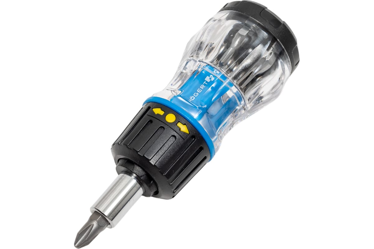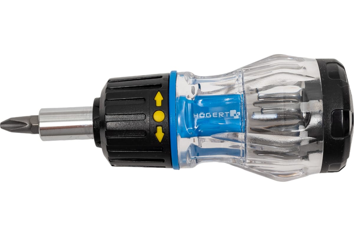 Купить Отвертка с реверсом HOEGERT 100мм. биты в ручке 8шт. HT1S214