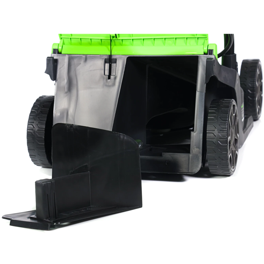 - Корпус деки сделан из ударопрочного пластика, который устойчив к попаданию посторонних предметов. Компактные размеры и малый вес дает высокую маневренность при кошении и экономии места в гараже или сарае. На устройстве расположена ручка для удобной переноски устройства.