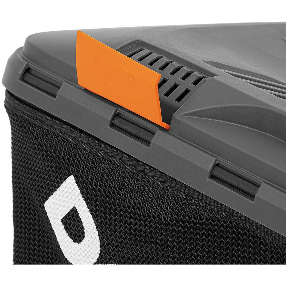 - Вместительный травосборник, объемом 50 л, позволяет реже останавливать работу для его опустошения. Сетчатый материал, из которого изготовлена камера, легко поддается очистке от остатков травы и сока растений.