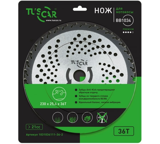 Купить Нож для мотокосы TUSCAR BB1034, Premium, 230x25,4x36T, Anti-Kick 1031034111-36-2