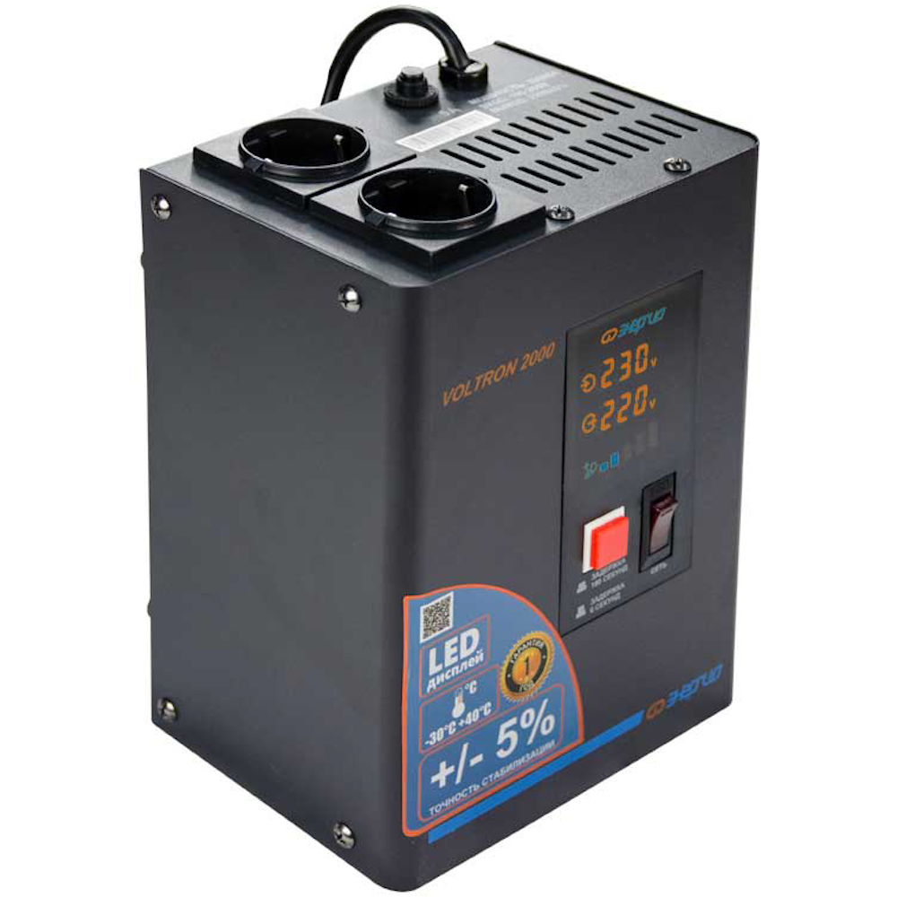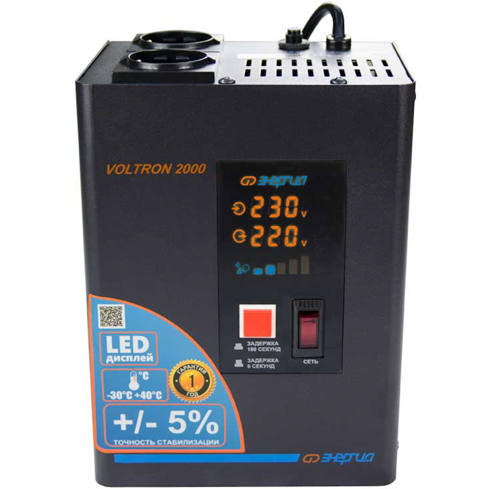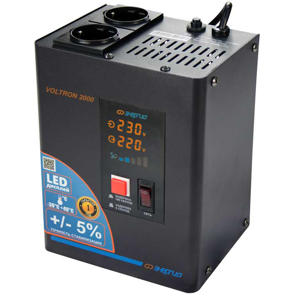 Стабилизатор напряжения ЭНЕРГИЯ Voltron 2000 E0101-0156 - универсальные стабилизаторы напряжения для любой техники в доме. Надёжные (усиленные вольфрамовые контакты реле), неприхотливые (могут быть установлены в неотапливаемых помещениях), обеспечивают высокую точность стабилизации (5%) с высокой скоростью срабатывания при резких перепадах напряжения.
