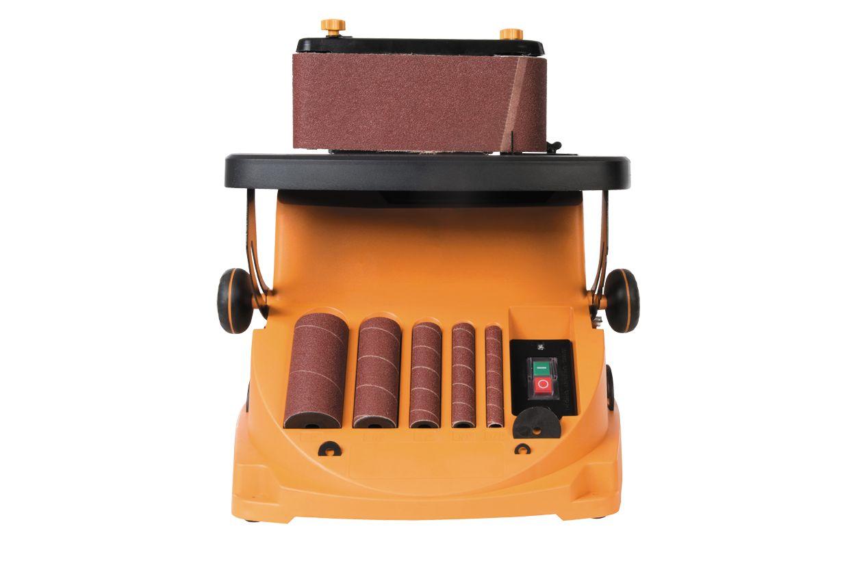 Осцилляционный шпиндельный шлифовальный станок Triton TSPST450 TR894303 - подходит для обработки различных деревянных заготовок. Абразивные втулки не только вращаются вокруг своей оси, но еще и перемещаются вдоль вала - это увеличивает линейную скорость обработки.