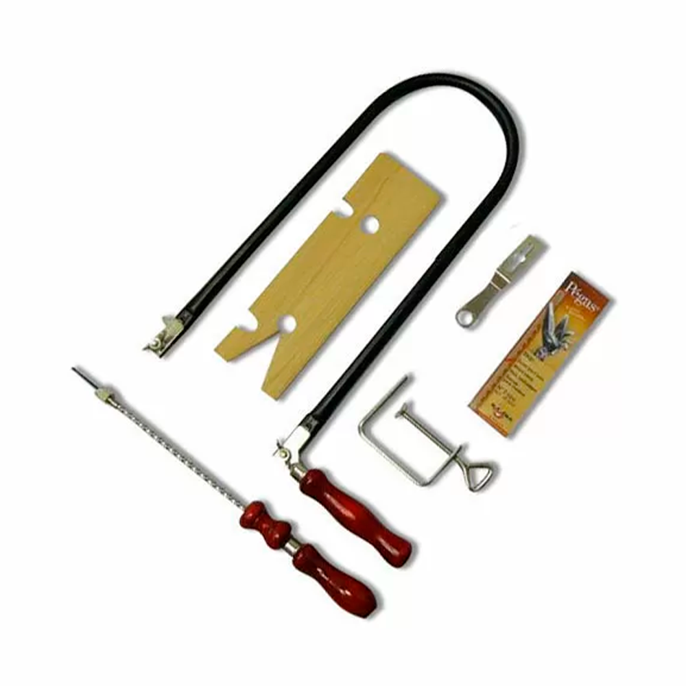 Лобзик, Набор пилок №2 - 12 шт с размером поперечного сечения 0.28 х 0.82 мм, Червячная дрель, Выпиловочный столик, Струбцинка для крепления выпиловочного столика, Ключ |
