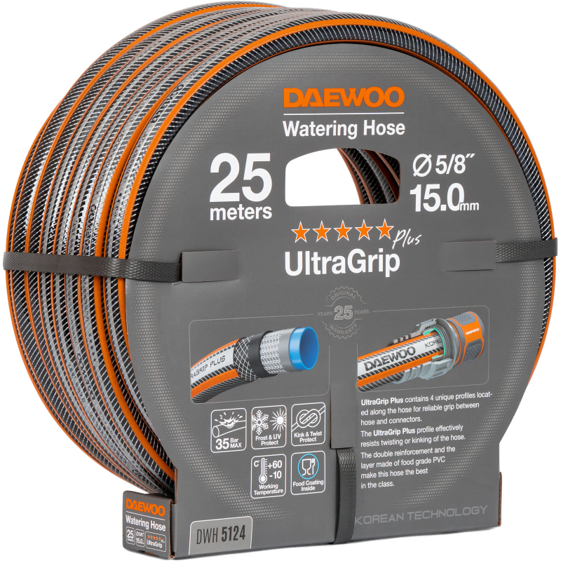 Характеристики Шланг UltraGrip диаметром 5/8" (15мм), длина 25 метров DAEWOO DWH 5124