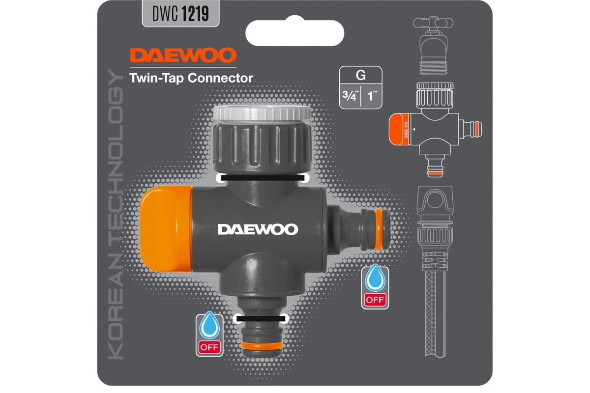 Купить Адаптер двухканальный DAEWOO для кранов с внешней резьбой G3/4" и 1" 26.5-33.3mm DWC 1219